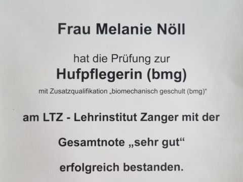 Das war mir aber nach ein paar Jahren noch lange nicht genug.... ich machte mich auf die Suche nach einer Hufpfleger Ausbildung. Diese begann ich am LTZ, die praktische Erfahrung sammelte ich u.a. bei einem Hufschmied.